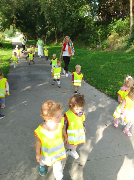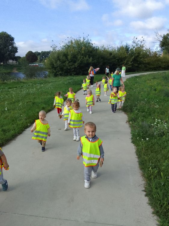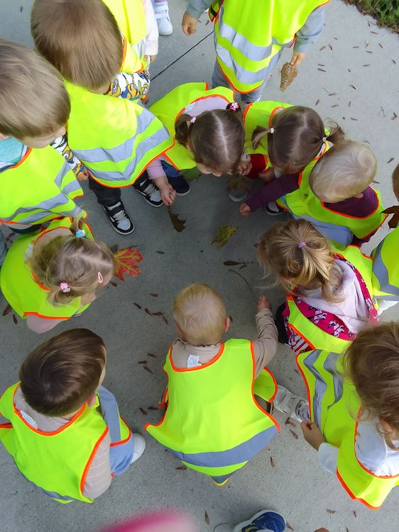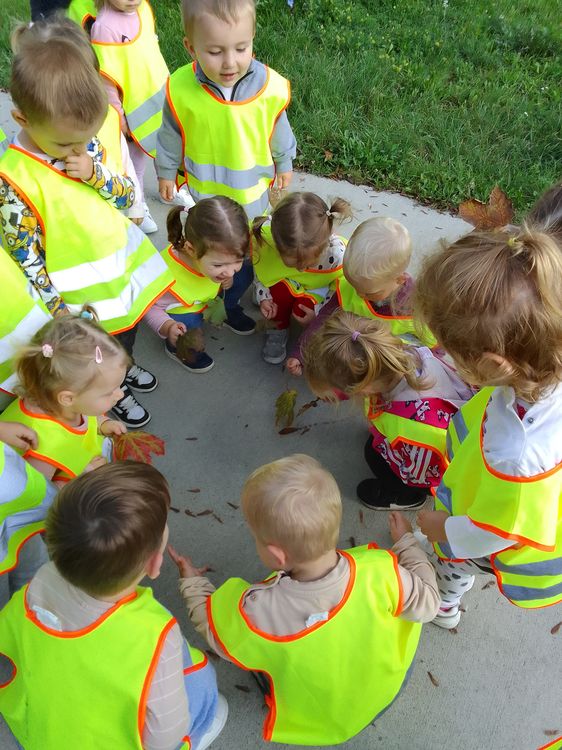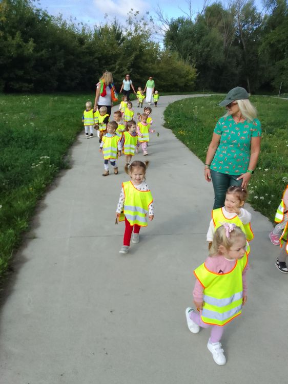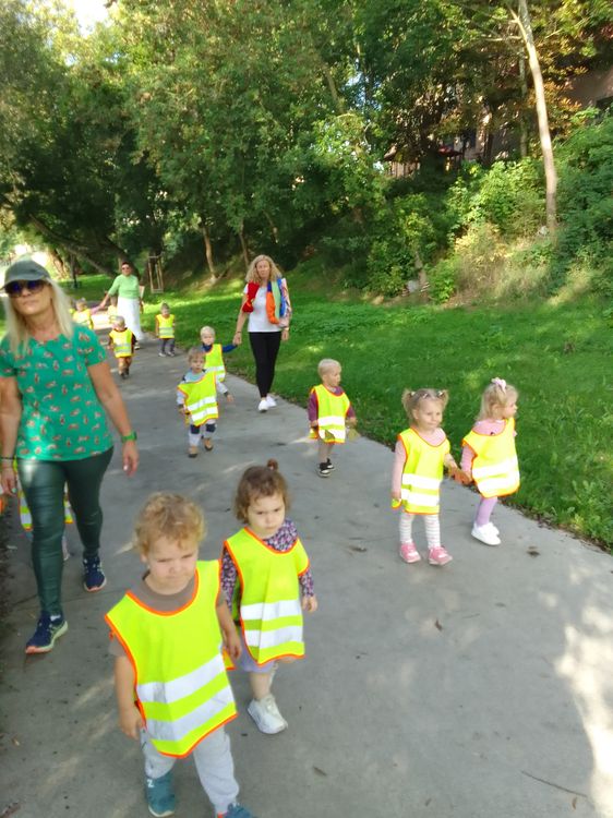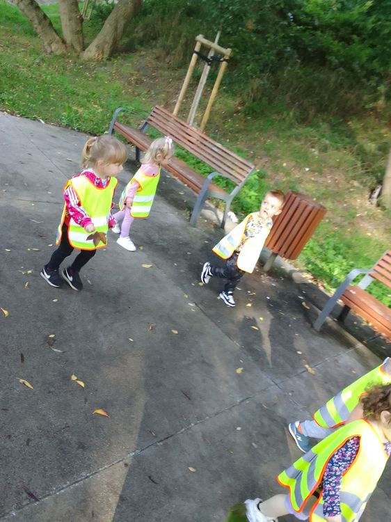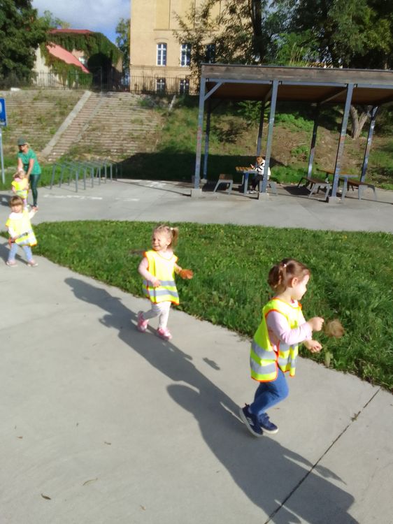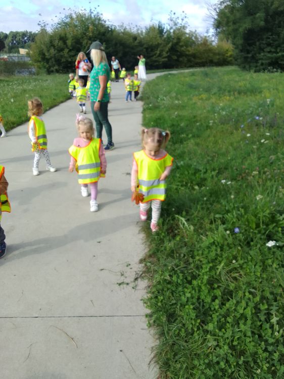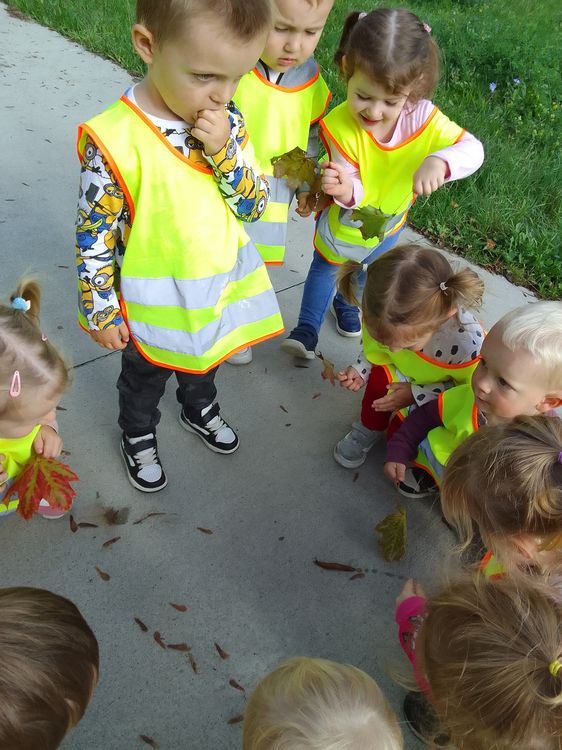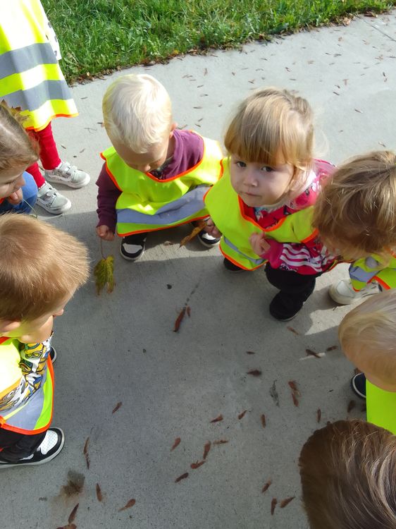 Wesołe Skrzaty postanowiły skorzystać z pięknej pogody i udały się na pierwszy spacer w poszukiwaniu oznak jesieni, niezwykle kolorowej pory roku. Dzieci zebrały pierwsze jesienne listki. Po drodze uczyły się nazywać napotkane drzewka