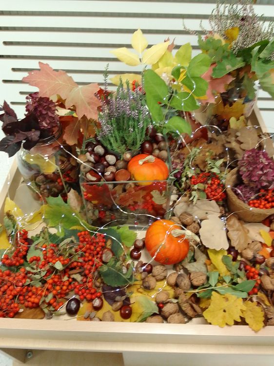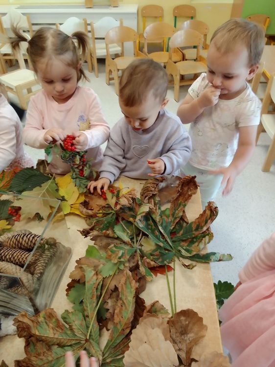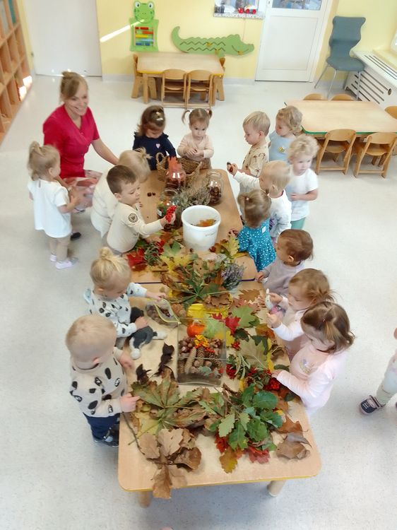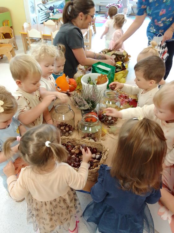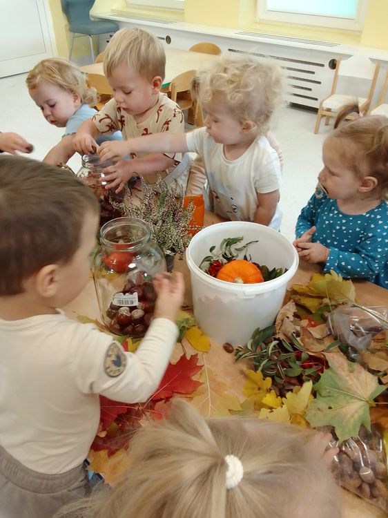 Nasze maluszki z zapałem układały jesienne kompozycje. Naszym zdaniem wyszło im przepięknie.