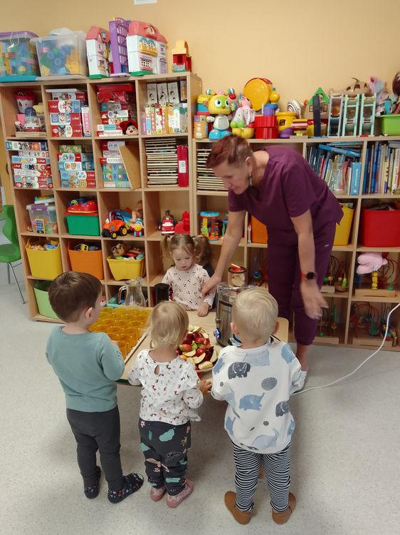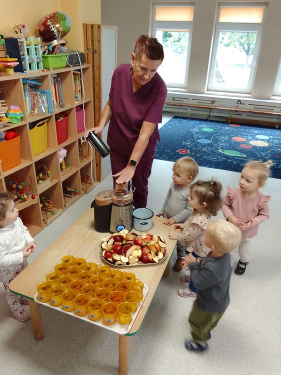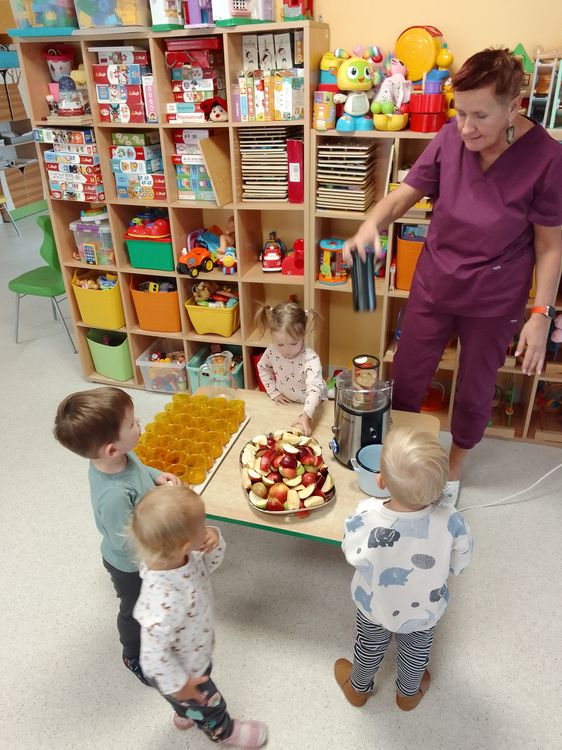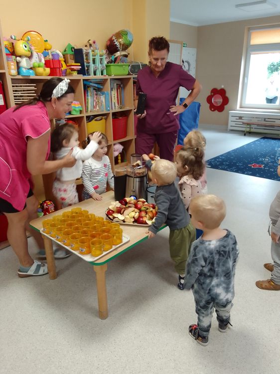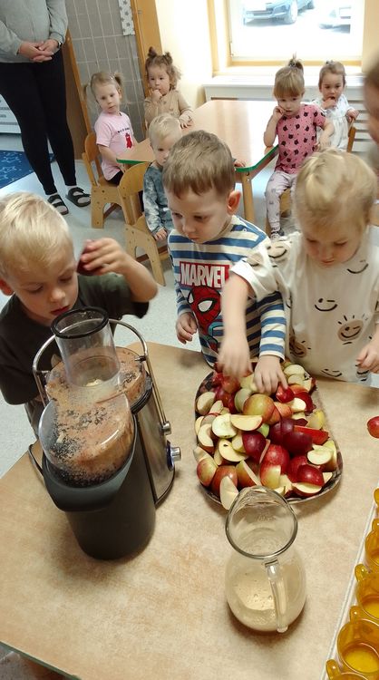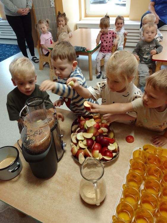 Podczas mijającego tygodnia Wesołe Skrzaty razem z ciociami przygotowały spiżarnię z owocami. Starszaki wiedzą już, jak wygląda i smakuje jabłko, gruszka, śliwka. Dzieci przygotowały również przepyszny soczek, który potem degustowały. Skrzaty wykonały również pracę plastyczną metodą stemplowania- jabłkiem. Wszystkim kochanym rodzicom dziękujemy za przyniesione owoce, zapraszamy do galerii zdjęć.