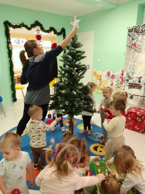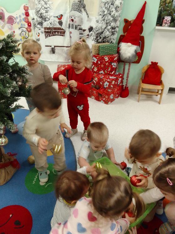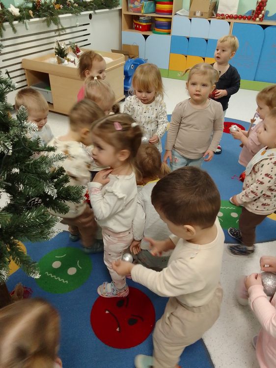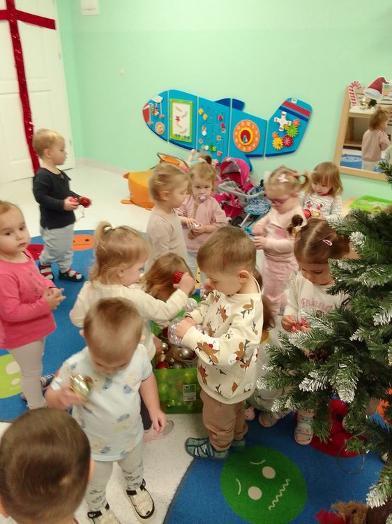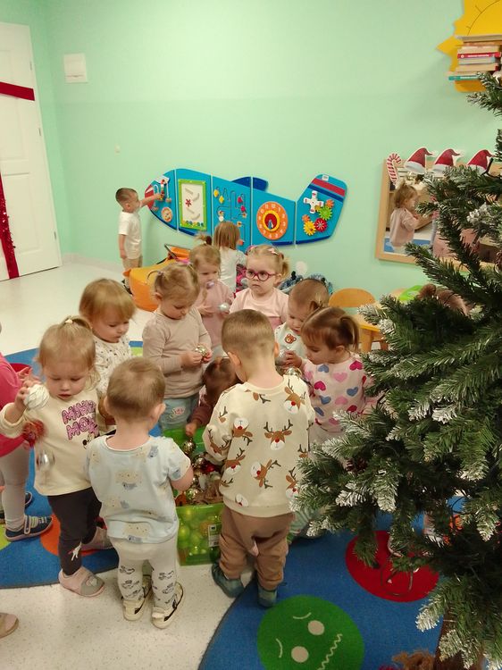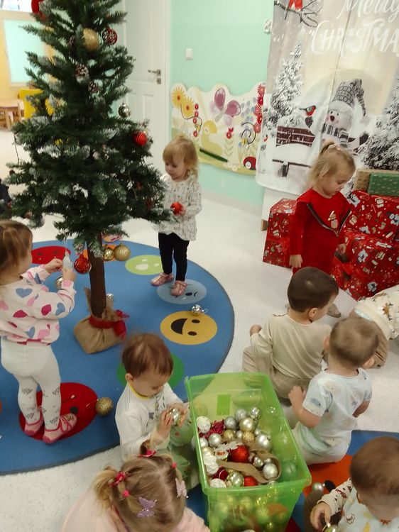serdecznie dziękujemy za zaangażowanie i przyniesienie pięknych ozdób choinkowych. Dzięki Wam nasza choinka stała się wyjątkowa, kolorowa i pełna świątecznego ciepła, a dzieci z radością dekorowały drzewko, ćwicząc przy tym motorykę małą oraz współpracę w grupie.