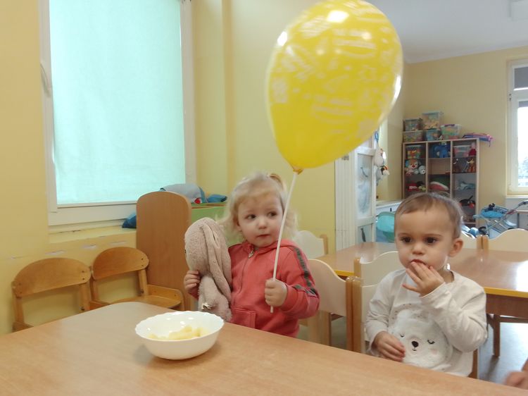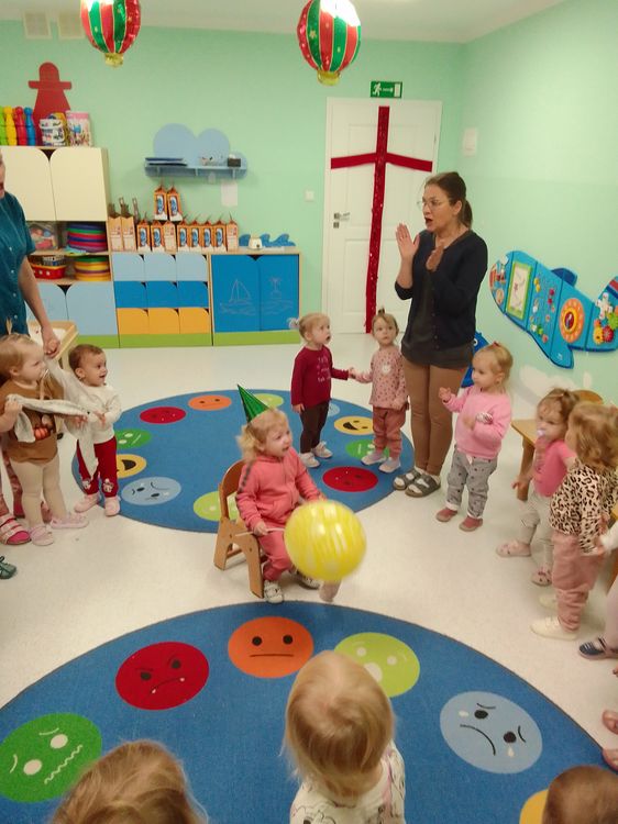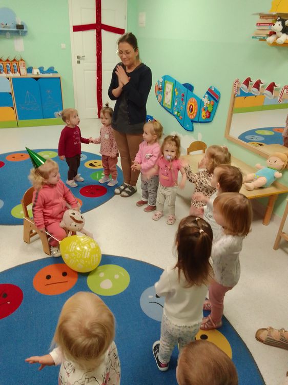 Dziś świętowaliśmy urodziny Nadii. Były wspólne życzenia, radosne zabawy, głośne „Sto lat” oraz słodki poczęstunek, za który dziękujemy rodzicom Nadii.