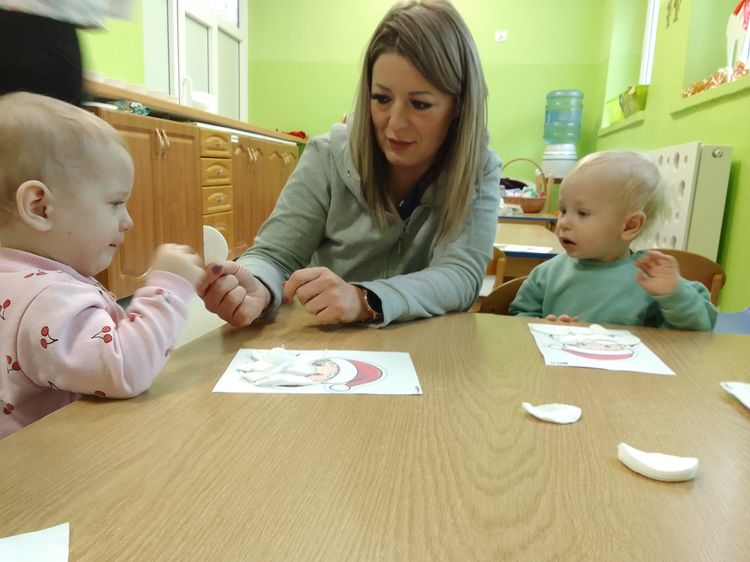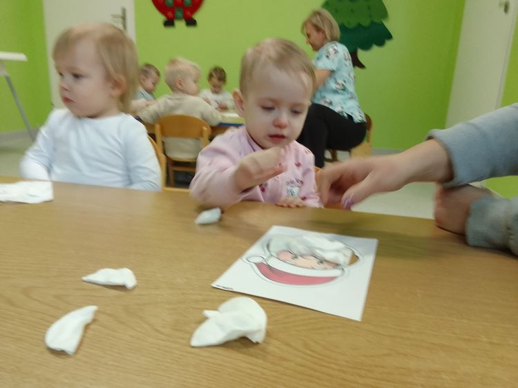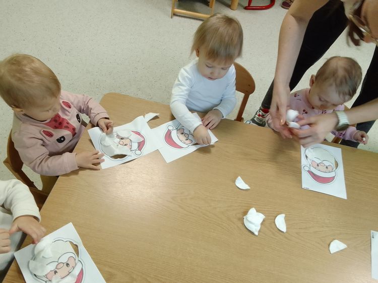 W ostatnich dniach przygotowywaliśmy się z dziećmi do wizyty Mikołaja. Dzieci pisały listy, w których opisywały swoje marzenia oraz wymarzone prezenty. Następnie listy zostały pięknie ozdobione i wysłane do Mikołaja. Wykonaliśmy także pracę plastyczną – brodę Mikołaja wyklejaną watą i materiałami plastycznymi. Dzieci z dużym zaangażowaniem tworzyły swoje prace, rozwijając przy tym kreatywność oraz zdolności manualne. Atmosfera była radosna i pełna świątecznego oczekiwania