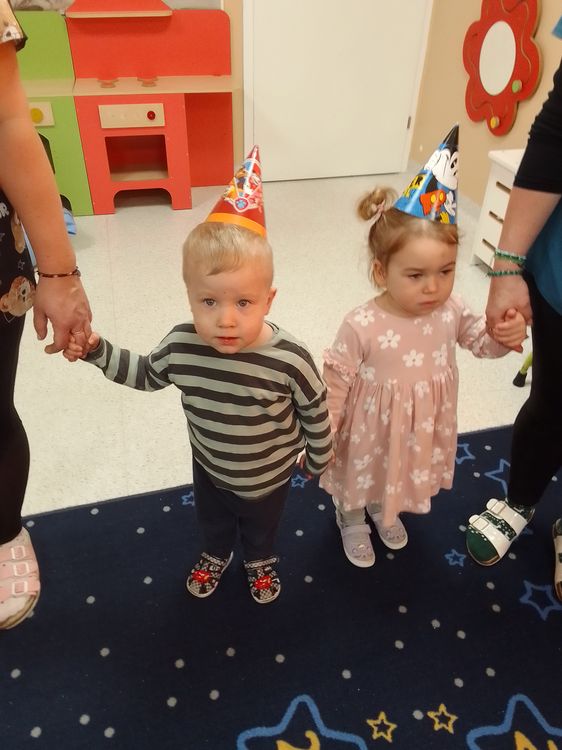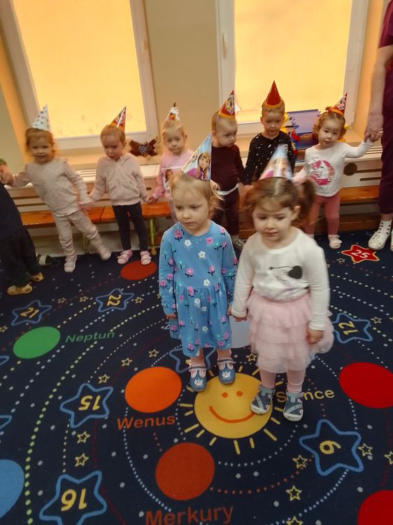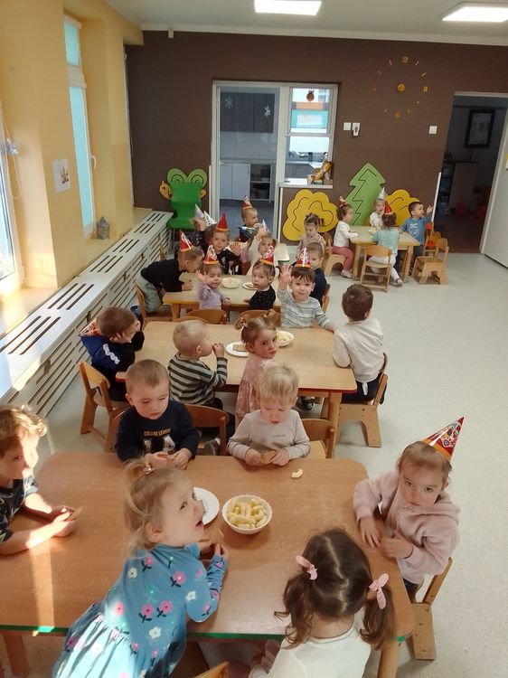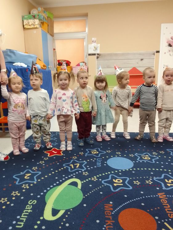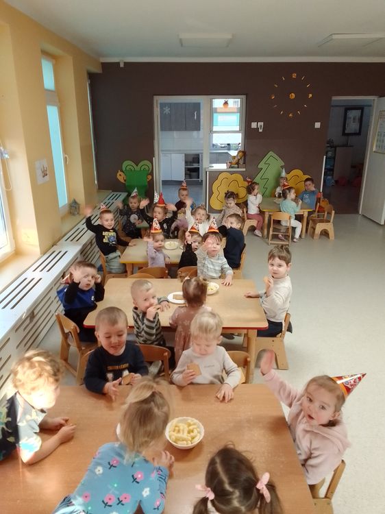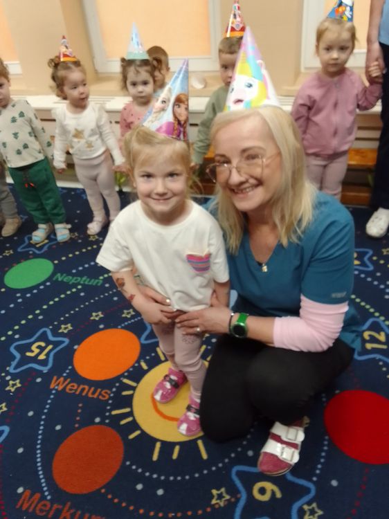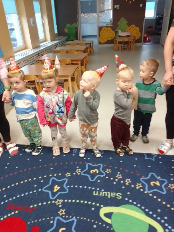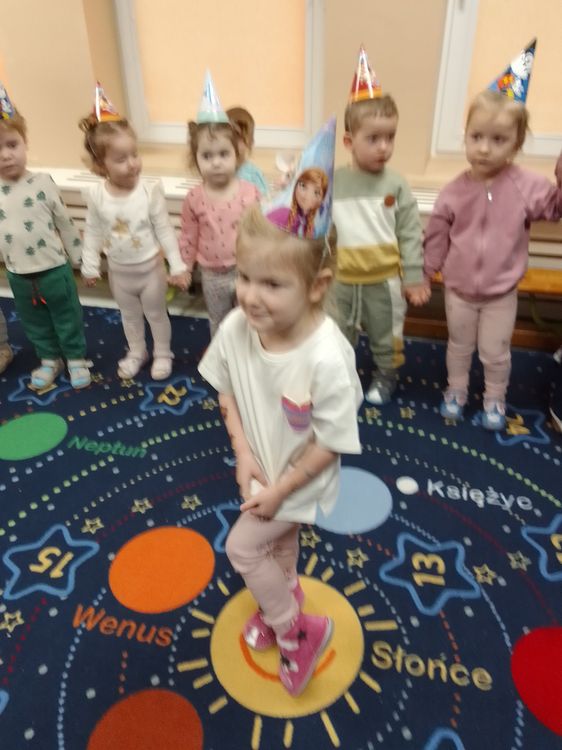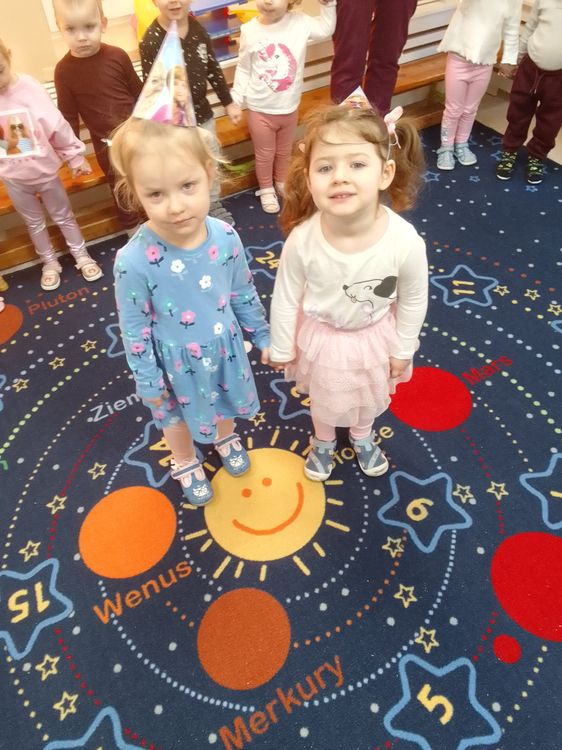 Aurelia, Emilka i Tosia. Dziewczynki przyniosły słodki poczęstunek, dzieci zaśpiewały „Sto lat” oraz taniec do muzyki disko. To była świetna uroczystość. Rodzicom dziękujemy za prezenciki i słodkości.