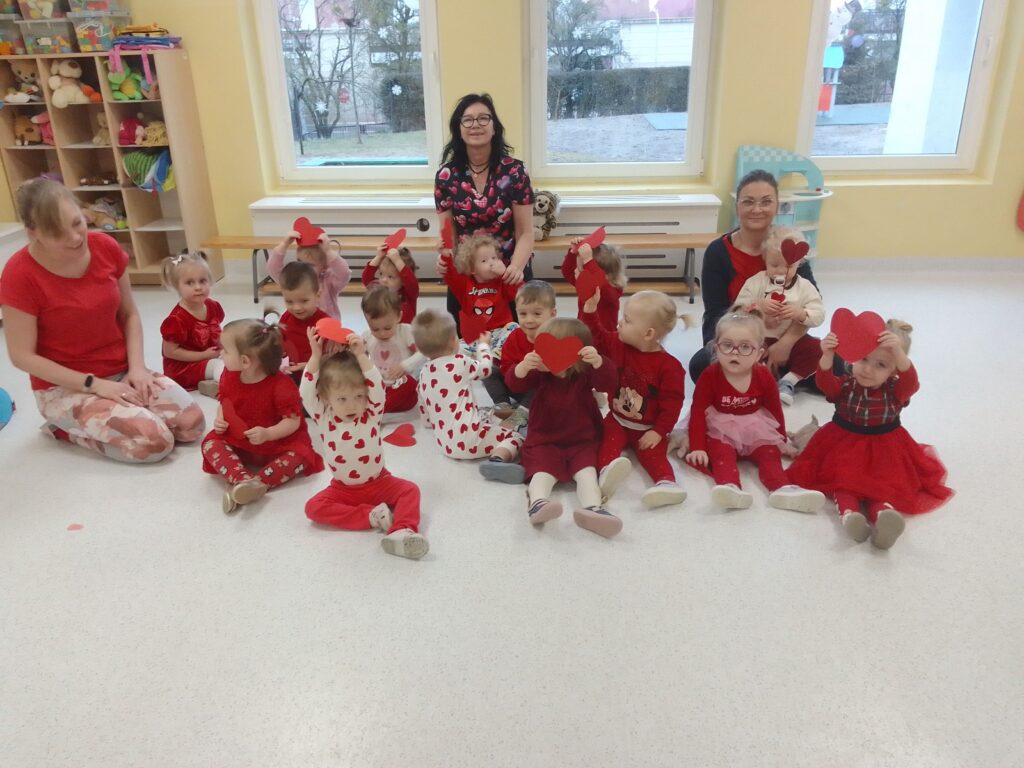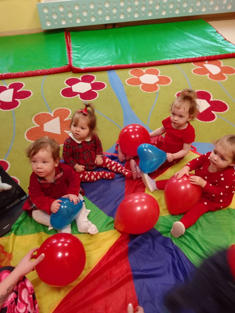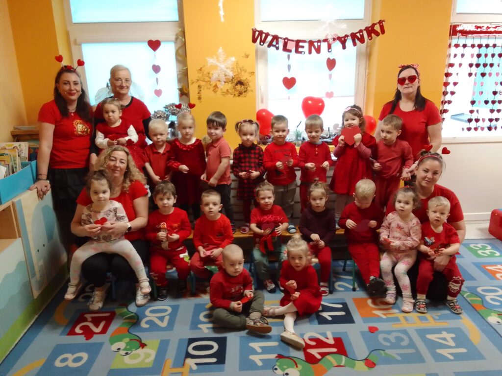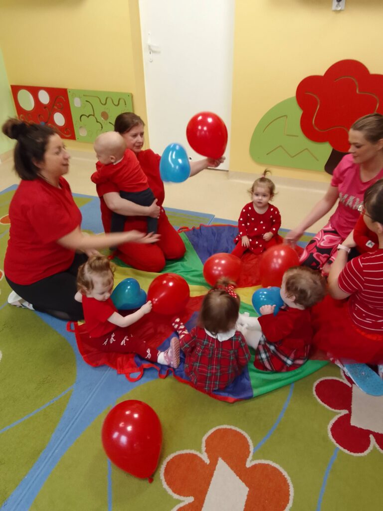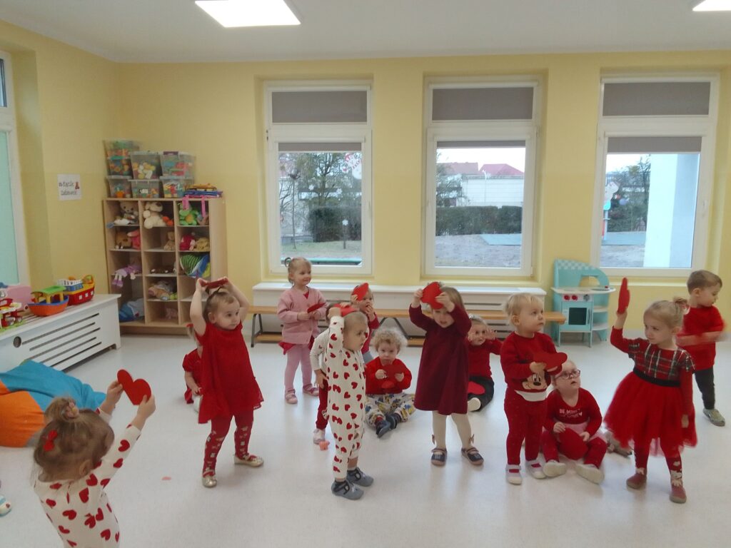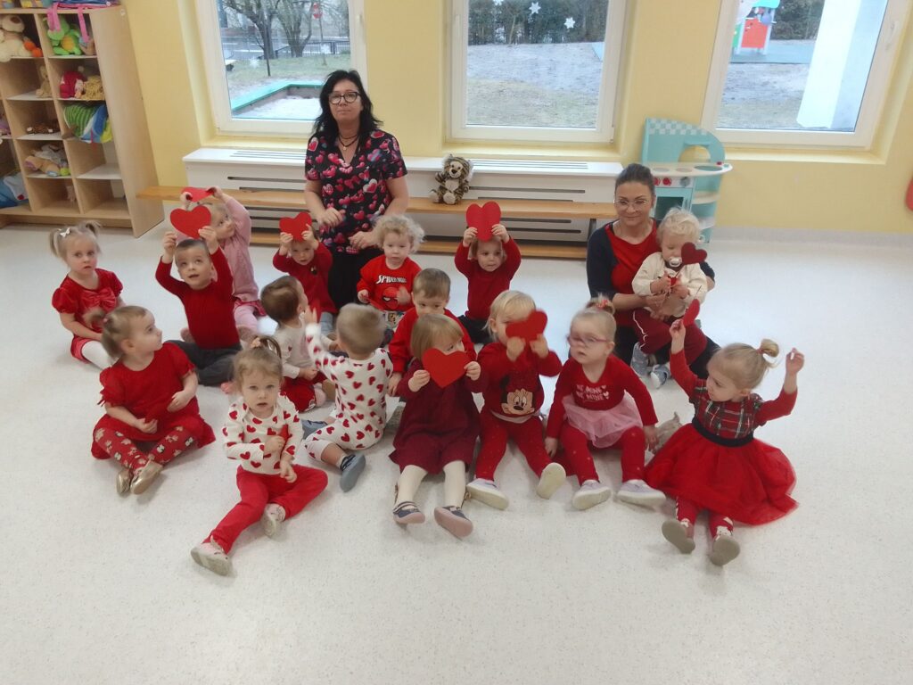 W miniony piątek w naszym żłobku zrobiło się bardzo miło i serdecznie. Powodem tego stały się Walentynki. Tego dnia wszyscy w czerwieni, bawili się pełni radości serduszkami o różnej wielkości i strukturze. Nie brakło tańców i zabaw z chustą Klauzego. Powstało wielkie serce z kulek, piękne serduszkowe wydzieranki i kolorowanki.
