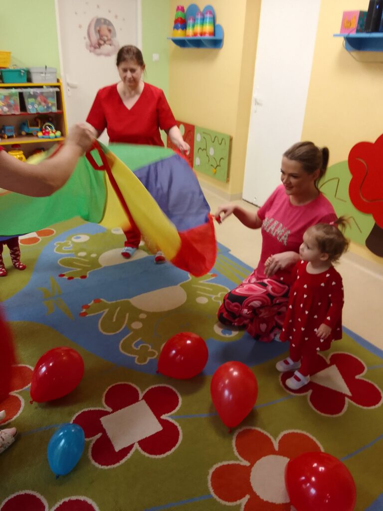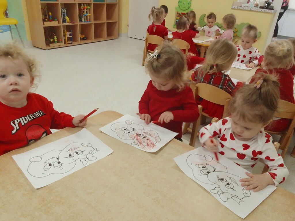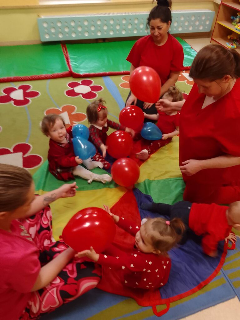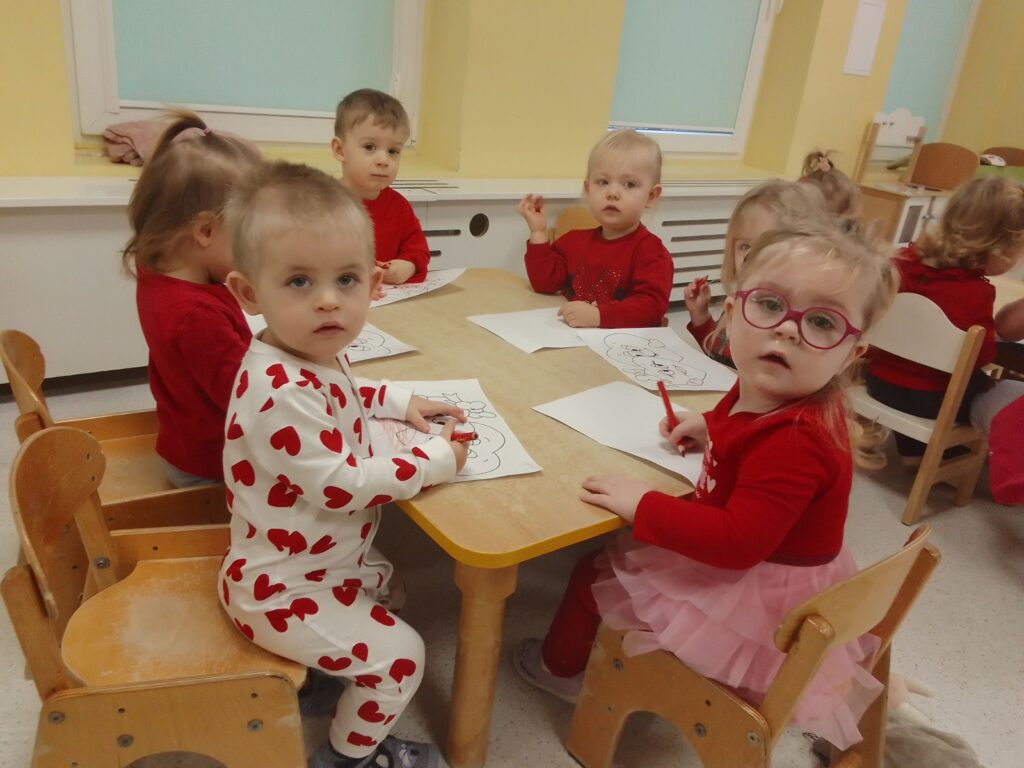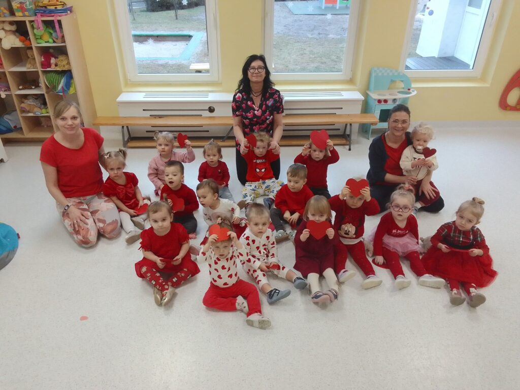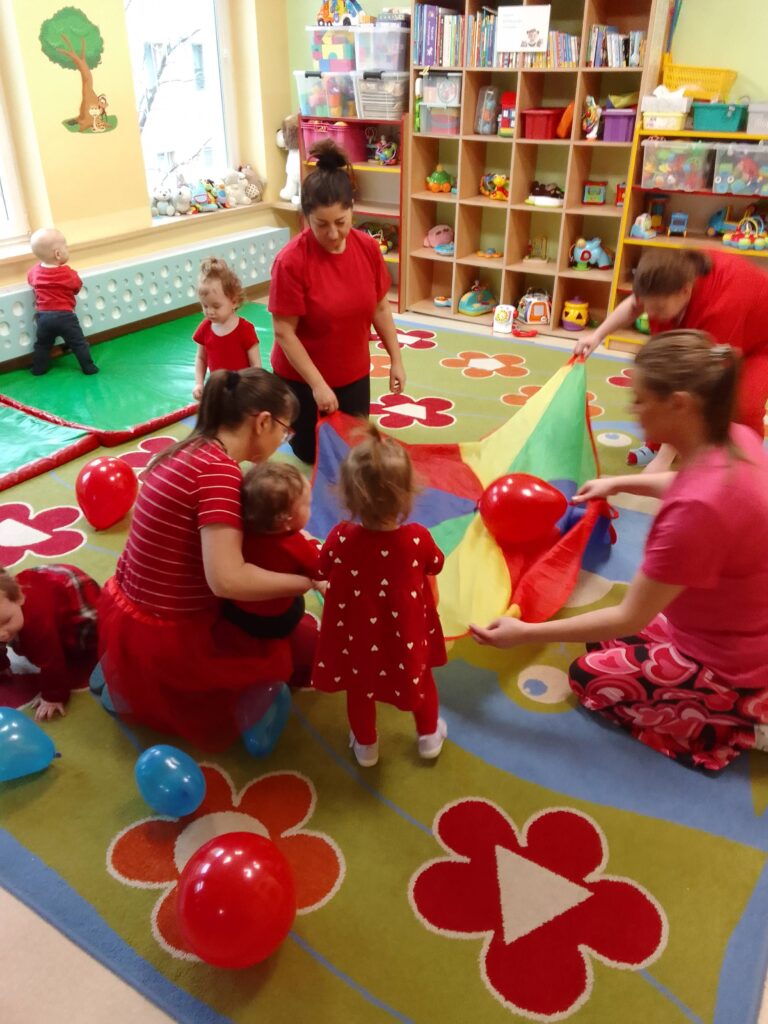 W miniony piątek w naszym żłobku zrobiło się bardzo miło i serdecznie. Powodem tego stały się Walentynki. Tego dnia wszyscy w czerwieni, bawili się pełni radości serduszkami o różnej wielkości i strukturze. Nie brakło tańców i zabaw z chustą Klauzego. Powstało wielkie serce z kulek, piękne serduszkowe wydzieranki i kolorowanki.