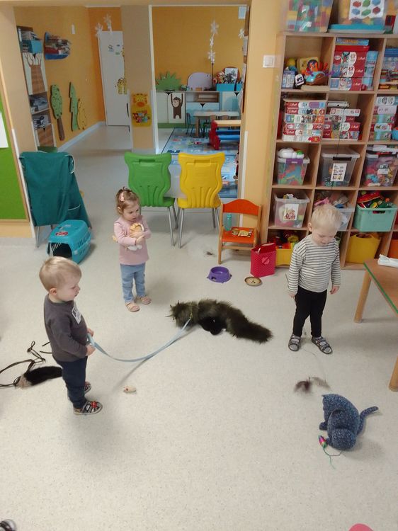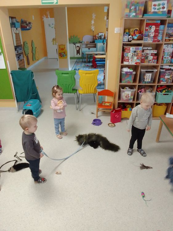 17.lutego obchodziliśmy w naszym żłobku Dzień Kota. Dzieciaczki mogły poznać bliżej te piękne zwierzęta, dowiedzieć się co najchętniej jedzą, poznać kocie zabawy i zabawki, a nawet pobawić się pluszowymi kiciusiami czy je „nakarmić”. Nie brakło wysłuchania bajki na temat tych stworzeń wędrujących swoimi ścieżkami czy Teatrzyku Kamishibai, którego były bohaterem.