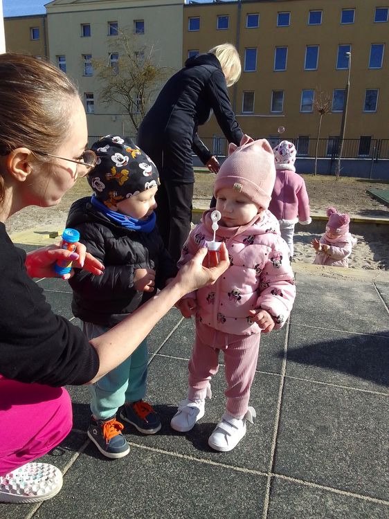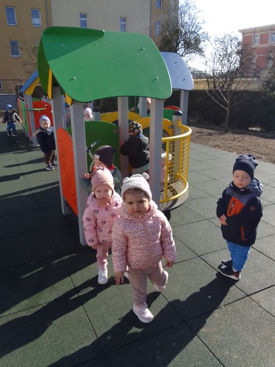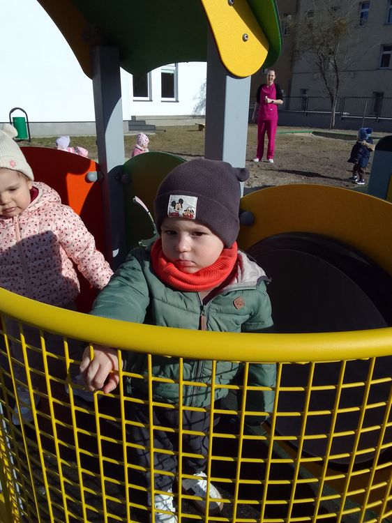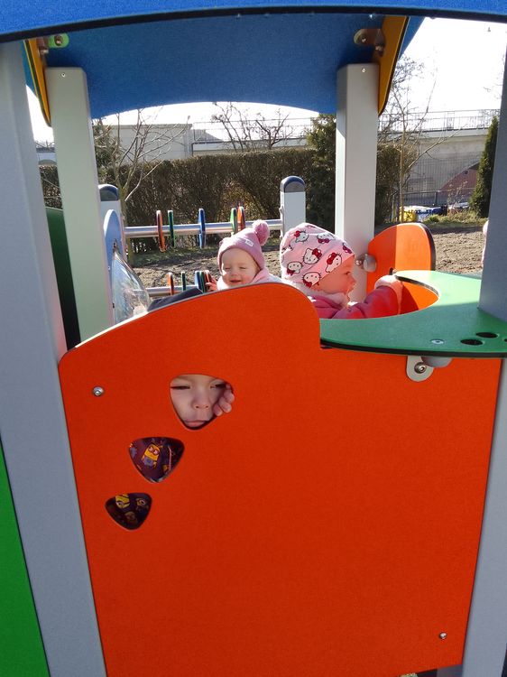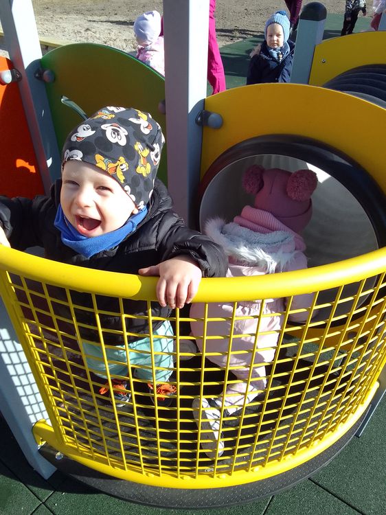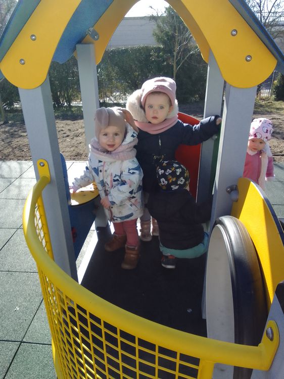 Korzystając z ładnej pogody Motylki bawiły się na placu zabaw. Dzieci uwielbiają zabawę pod gołym niebem, szaleństwa na świeżym powietrzu są nie tylko świetną zabawą, ale również prawdziwą nauką.