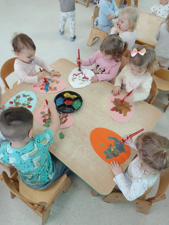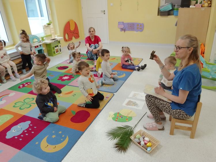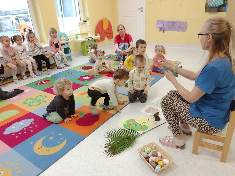 Zbliżają się i nasze Maluchy poznały symbole Świąt Wielkanocnych. Ciocie przybliżyły dzieciom podstawowe symbole świat, takie jak jajka, zajączek, kurczaczek, koszyczek i baranek.